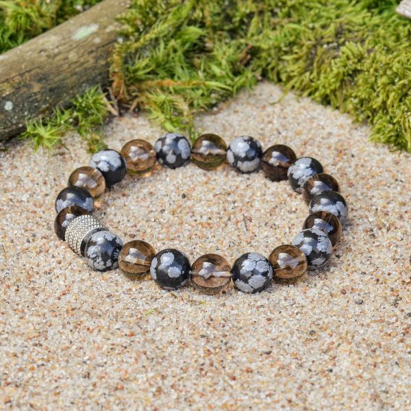 Bracelet composé de quartz fumé et d’obsidienne flocon de neige