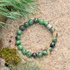 Le bracelet en aniolite, également connu sous le nom de bracelet en cosite, est un bijou enchanteur et exquis qui combine les tons verts lumineux de la cosite avec les taches contrastées du rubis pourpre. Ce bracelet en pierre unique révèle la beauté naturelle et la fusion harmonieuse de ces deux pierres.