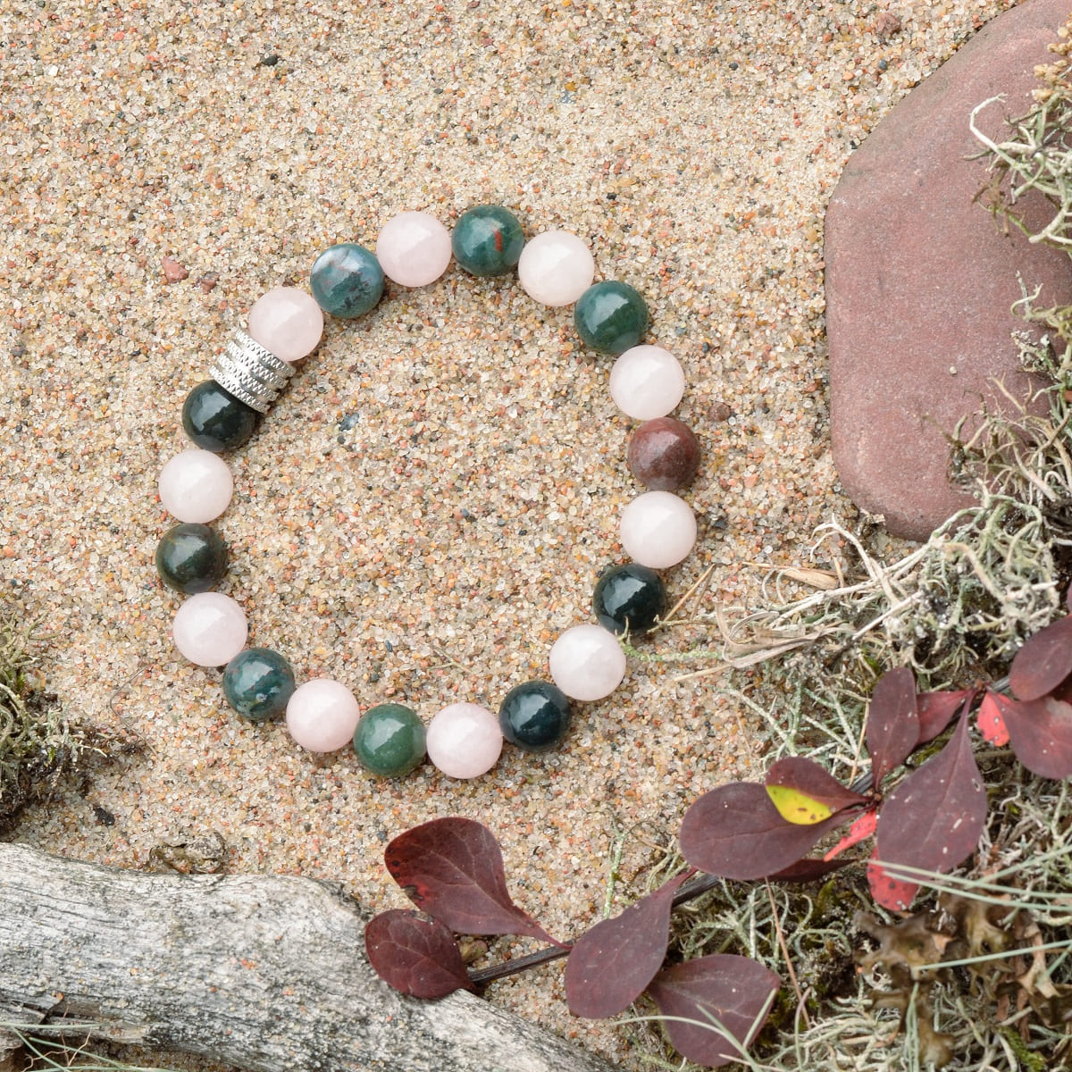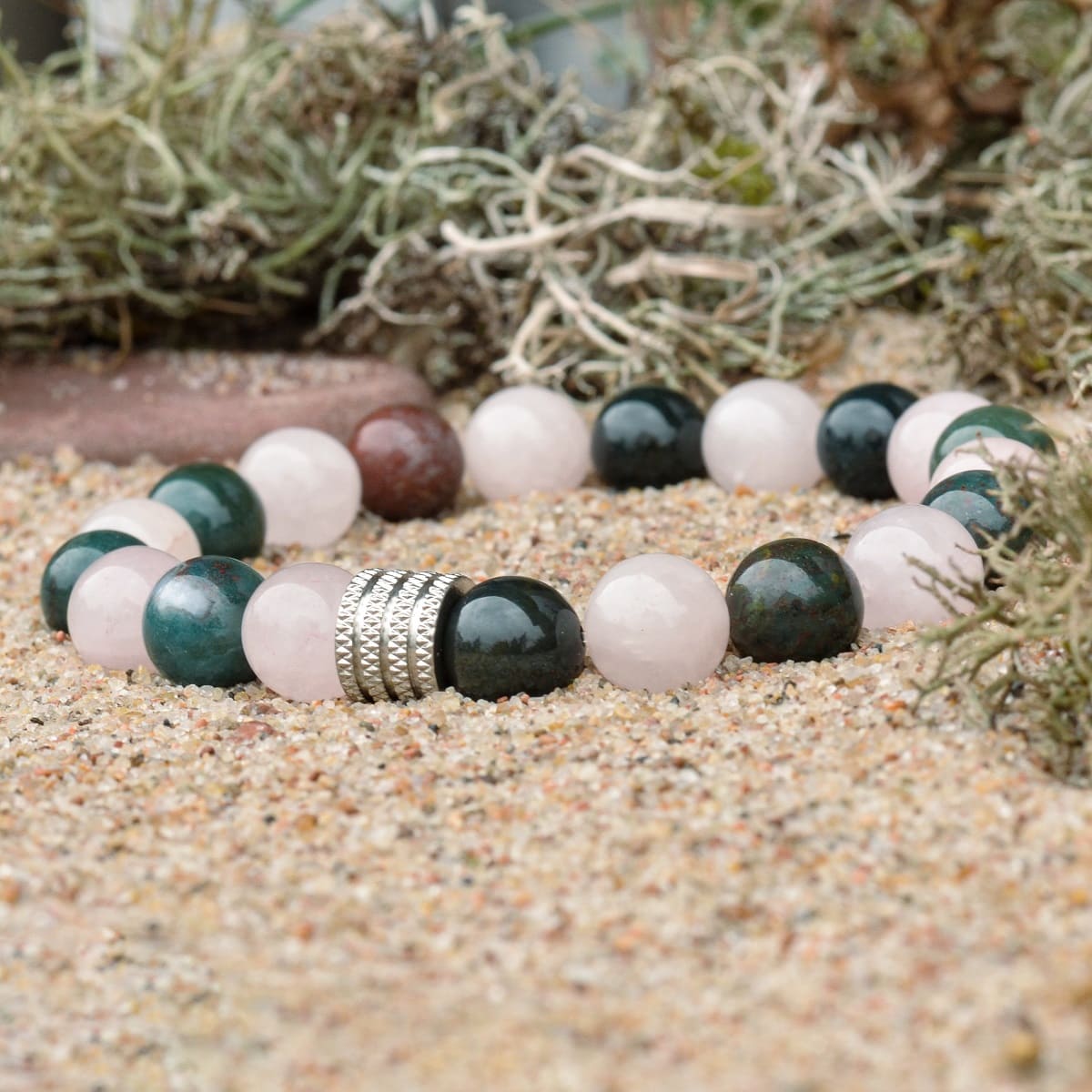 Bracelet de pierre de sang (héliotrope) et de quartz rose