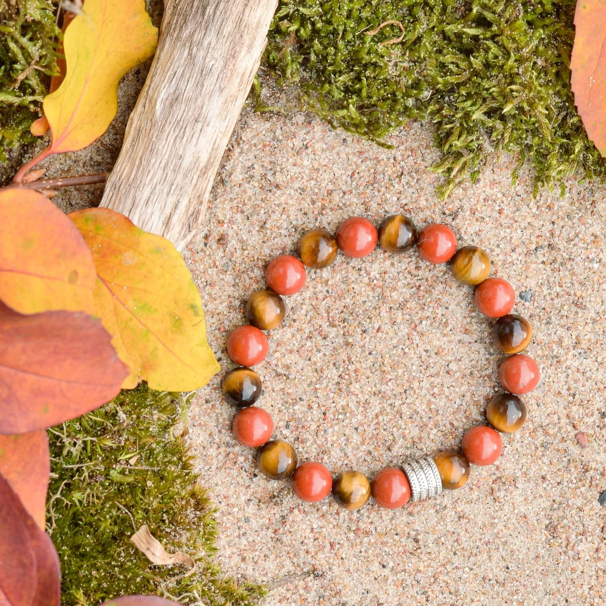 Bracelet en oeil de tigre et en jaspe rouge
