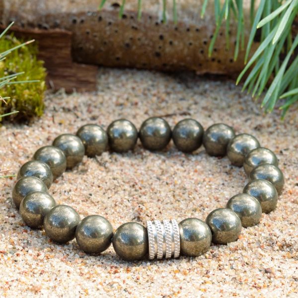 Placement : le bracelet est placé sur le poignet, de préférence près du point de pulsation. On pense que cela améliore le flux d’énergie associé à la pyrite et amplifie ses propriétés métaphysiques.