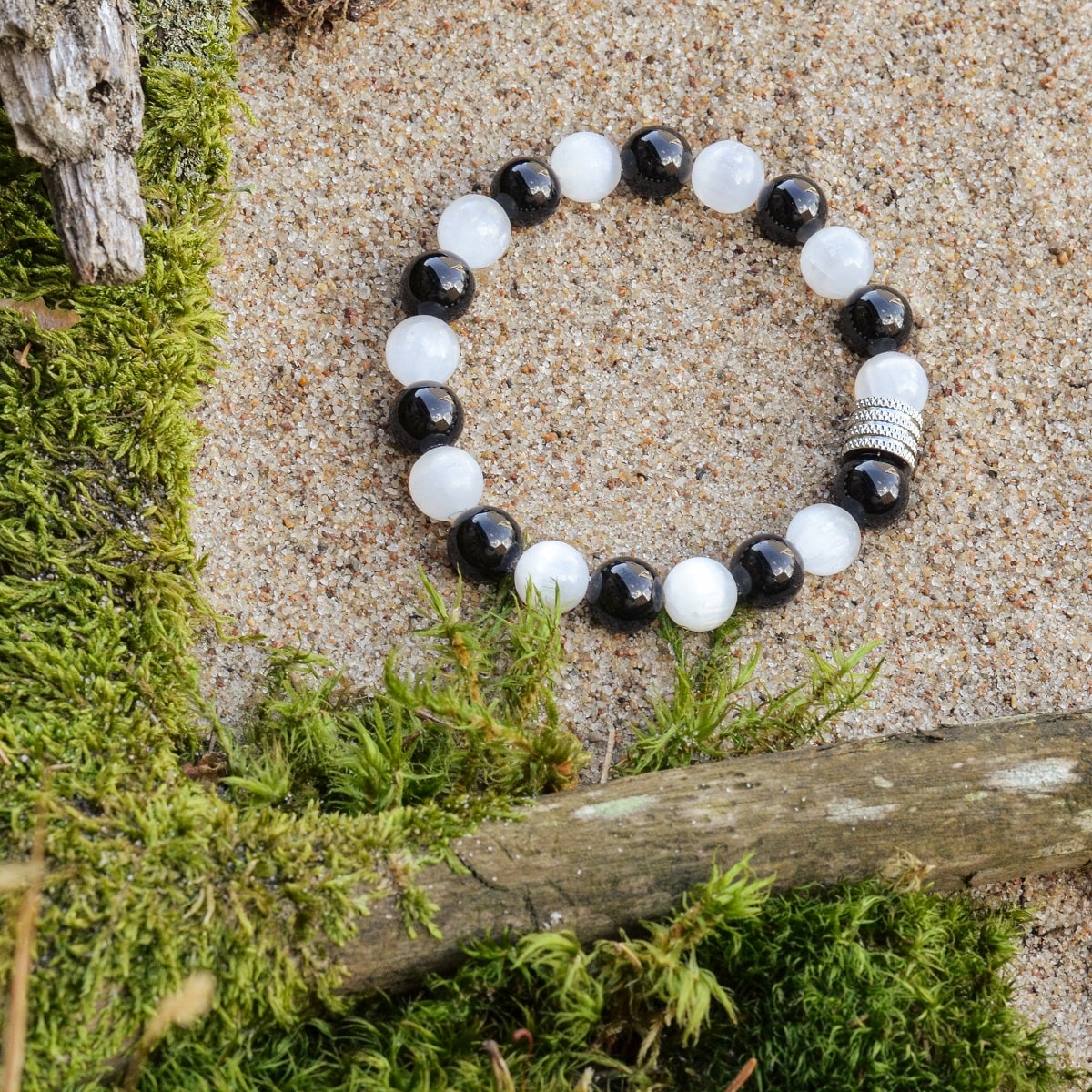 Bracelet en sélénite et tourmaline noire (Sherlock)