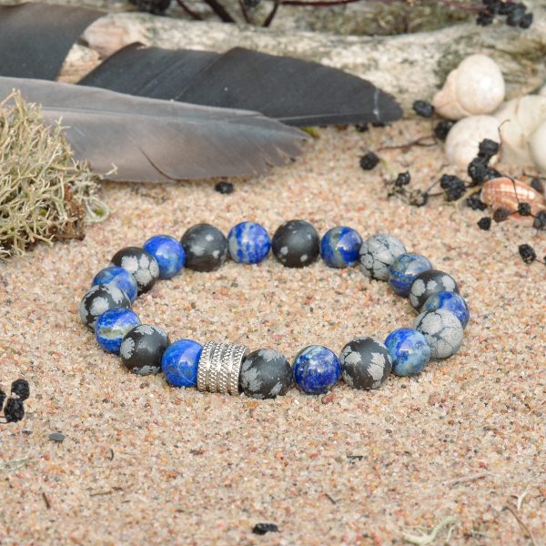Bracelet flocon de neige en obsidienne et lapis-lazuli