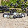 Appréciez l’équilibre et la beauté avec une combinaison de lave, de rhyolite, de labradorite et d’amazonite dans votre nouveau bracelet du signe du Sagittaire.